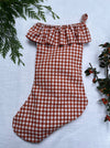 Celebrate the festive season with this charming handmade Christmas stocking, crafted from soft linen (red) or cotton (green) in a classic gingham pattern. This stocking brings a nostalgic, farmhouse-inspired touch to your Christmas decor. The delicate frill around the top adds a whimsical, feminine detail, making it a perfect addition to mantelpieces or for hanging on bedposts. Designed with care, this stocking is not only decorative but durable, ready to be filled with gifts year after year.