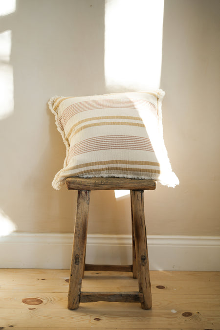 Sold Out Quick Shop The Painted Bird Hallie Brown & Cream Stripe Ruffle Linen Cushion - 45x45cm £45.00