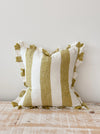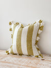 Hallie Light Olive Wide Stripe Ruffle Linen Cushion - 45x45cm