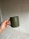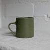Hand thrown ceramic mug glazed in a smooth satin forest green by Finnerty Ceramics.