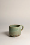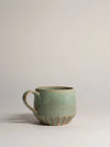 A stoneware mug with a satin seakelp green glaze. Each mug is individually hand crafted, thrown on a potter's wheel then carved. Due to the processes and glazes used, each item is individual and a one off which means the mug you receive may differ slightly from the image shown.