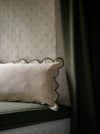 This elegant scalloped cushion layers so beautifully with our velvets on a sofa, bed or occasional chair.