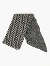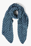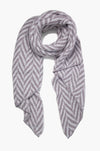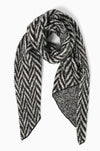 A chevron patterned heavyweight winter scarf, crafted from soft, textured acrylic yarn. Designed for warmth, this asymmetric scarf can be effortlessly paired with any winter attire.