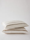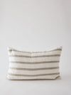The Malva cushion cover is made from a heavier stonewashed cotton fabric with a base of off-white and grey, featuring woven brown stripes as a detail. The weaving technique gives the fabric a beautiful striped pattern.