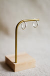 Minimal light weight stud hoops featuring a brushed texture with flattened curves - perfect for everyday wear.